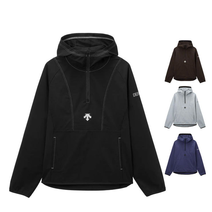 着脱しやすいハーフジップスタイル。腹部には大きめのポケットを配置。
