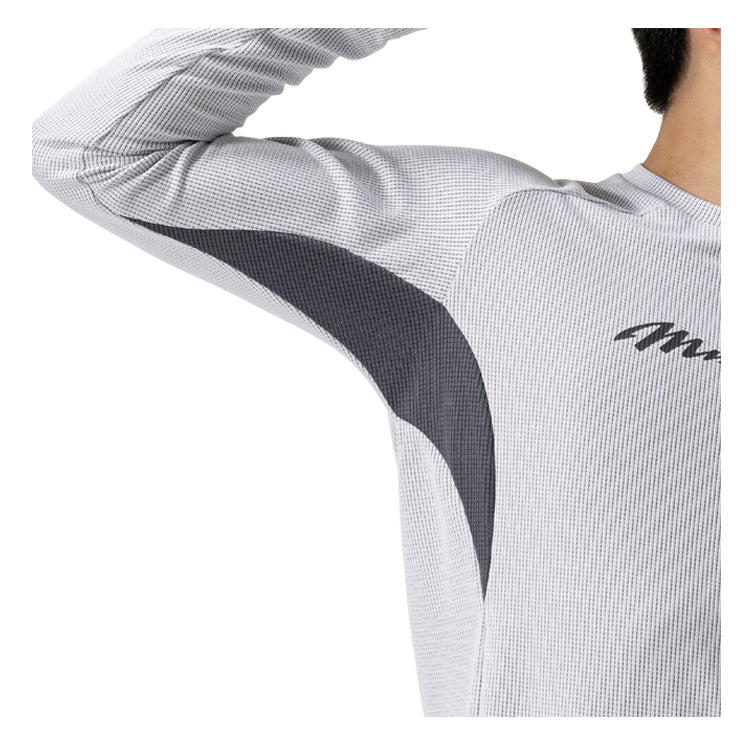 汗を素早く処理するKUGEKI技術に、特殊練り込み糸による温熱性能を組み合わせ、肌寒い季節の発汗シーンの快適性をサポートします。