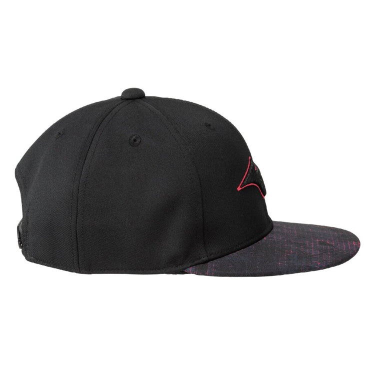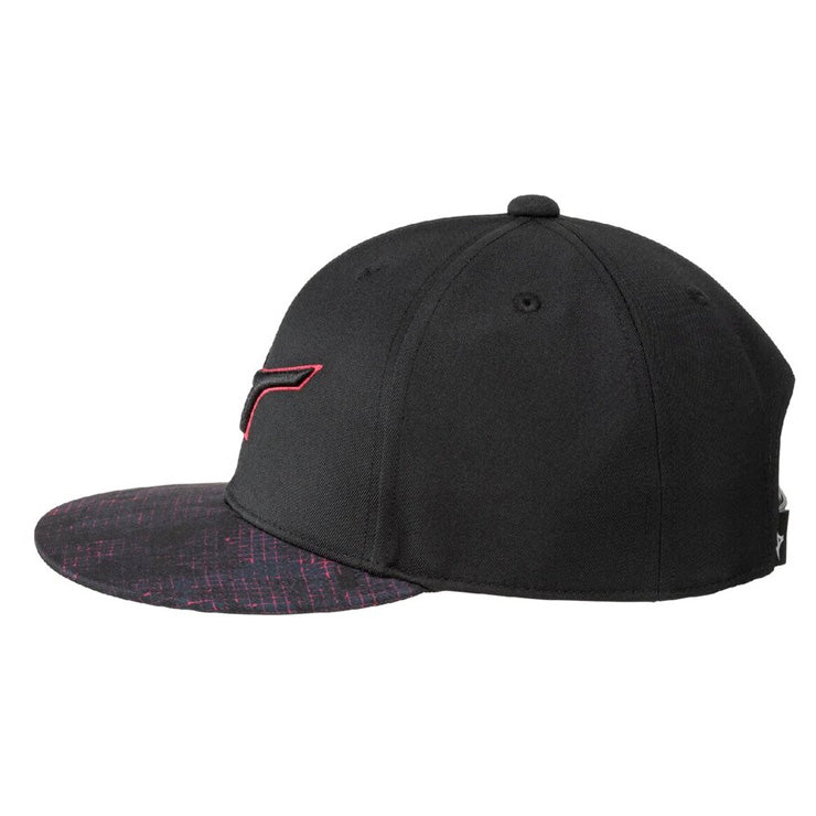 シーズンキーグラフィックを庇に使用したフラットキャップ(平つばキャップ)。