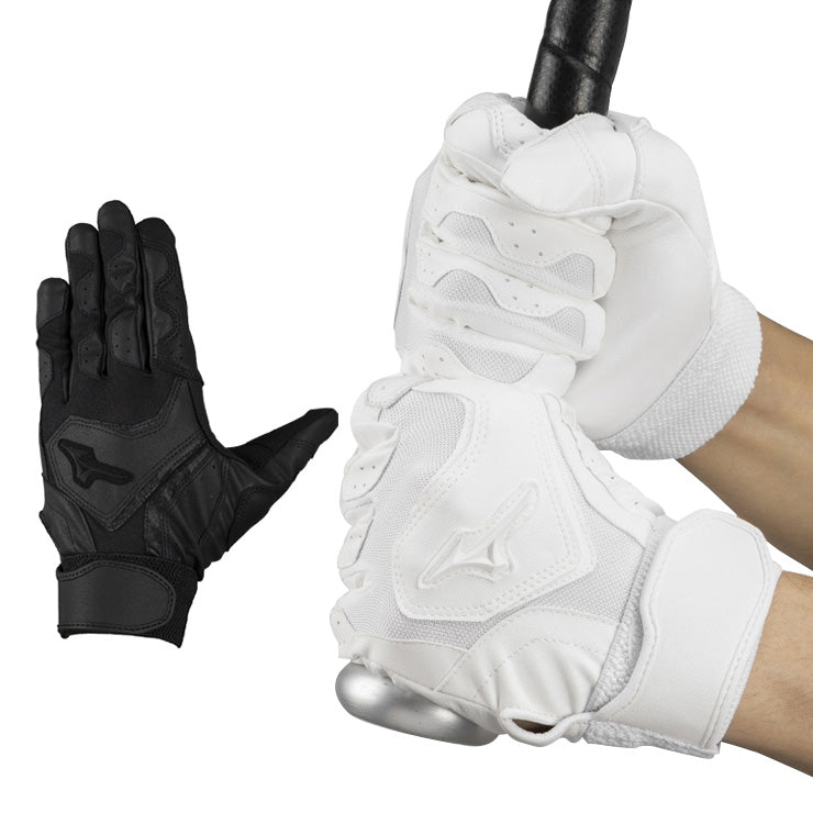 【刺繍1円】2025モデル ミズノ 高校野球対応 バッティンググローブ 両手用 ガチレザー 天然皮革 打ち込み 耐久性 1EJEH504 バッティング手袋 打者用手袋 大人 一般 学生野球 中学生 高校生 練習 試合 バッティンググラブ 白 黒 mizuno