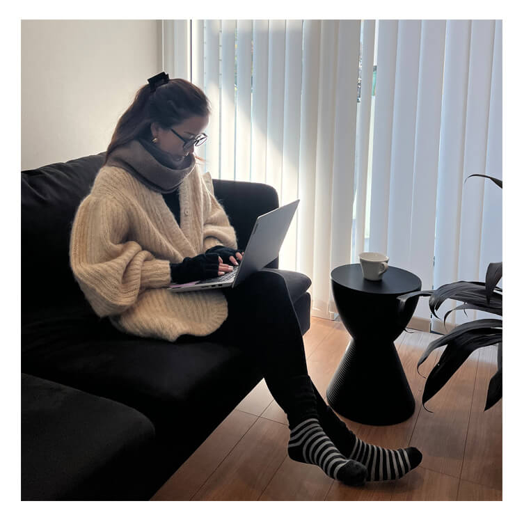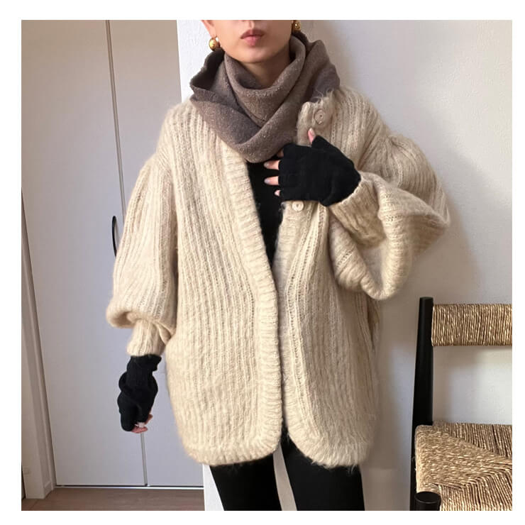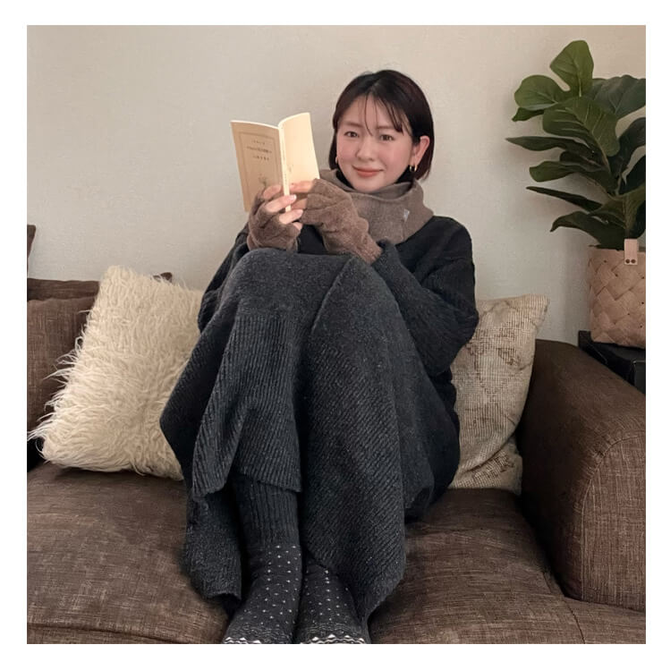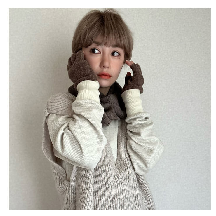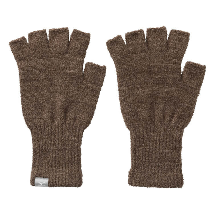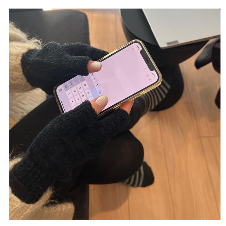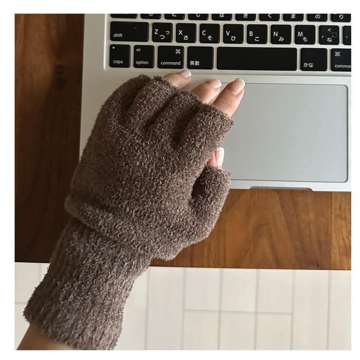 マシュマロのような肌触りで、やわらかいニット素材の指先あき手袋。