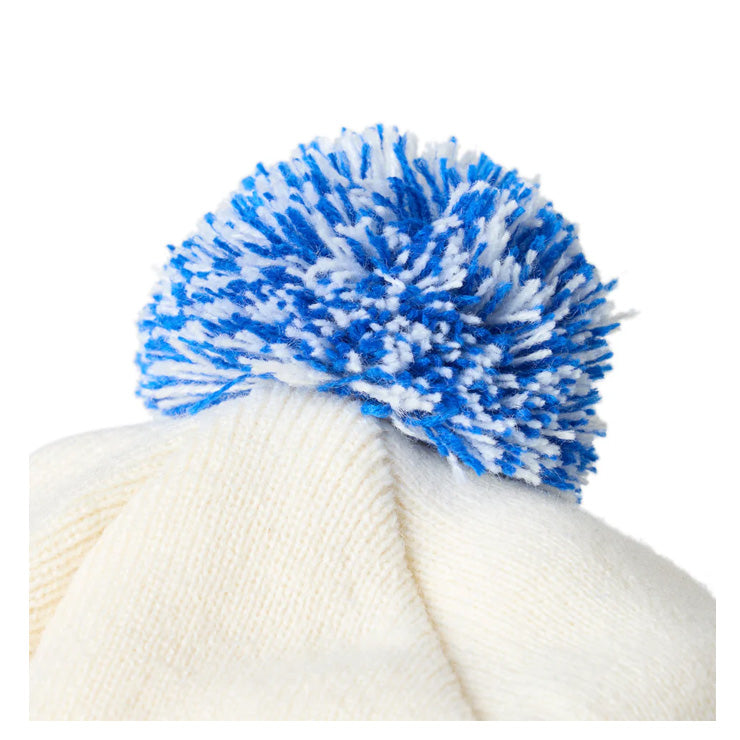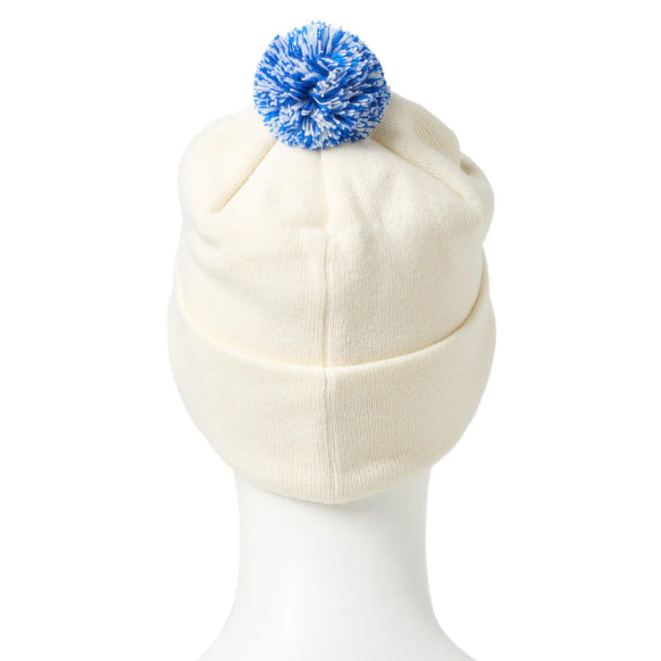 アクリル100%の糸で肉厚なリブ編みに編み上げ、ポンポンはコンパクトにデザインしました。