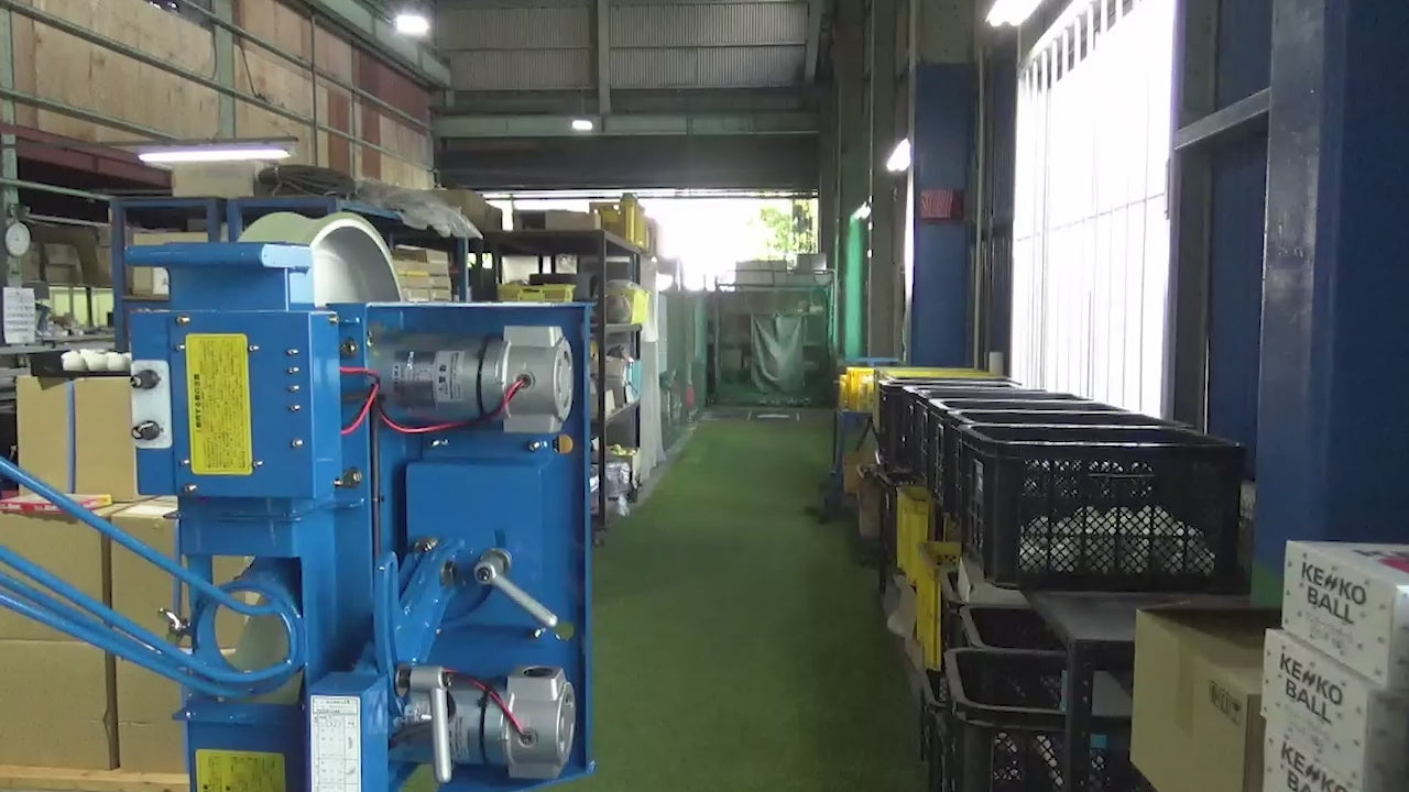軟式専用のノック兼用全球種ピッチングマシン。軟式M号・J号ボールで使用できます。