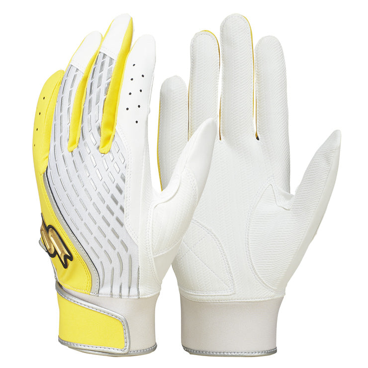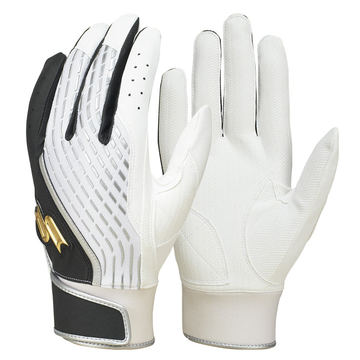 掌にはタイヤの溝をモチーフにしたエンボスパターン。手とバットの密着感を高めます。