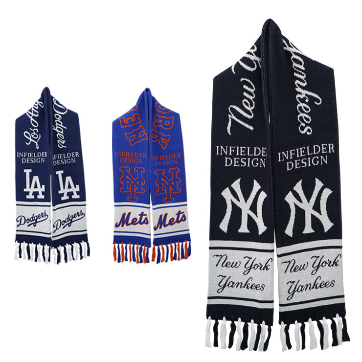 INFIELDER DESIGN×MLB マフラー MLB TEAM MUFFLER MLB-201 ヤンキース ドジャース メッツ おしゃれ お出かけ アウトドア 通学 メジャーリーグ