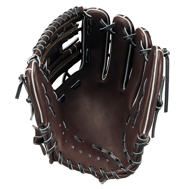 ボールの納まりが良く、確実な捕球からスムーズな右手への持ち替えが可能なジョイントHベルトウェブ仕様。手口逆巻き仕様、土手紐抜き仕様。