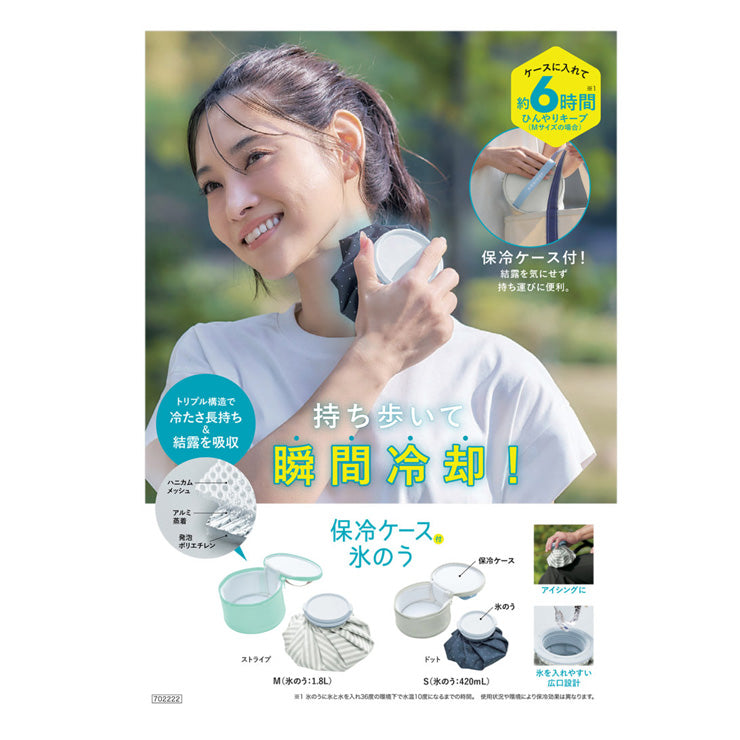 持ち運びに便利な保冷ケース付きの氷のう、Sサイズです。