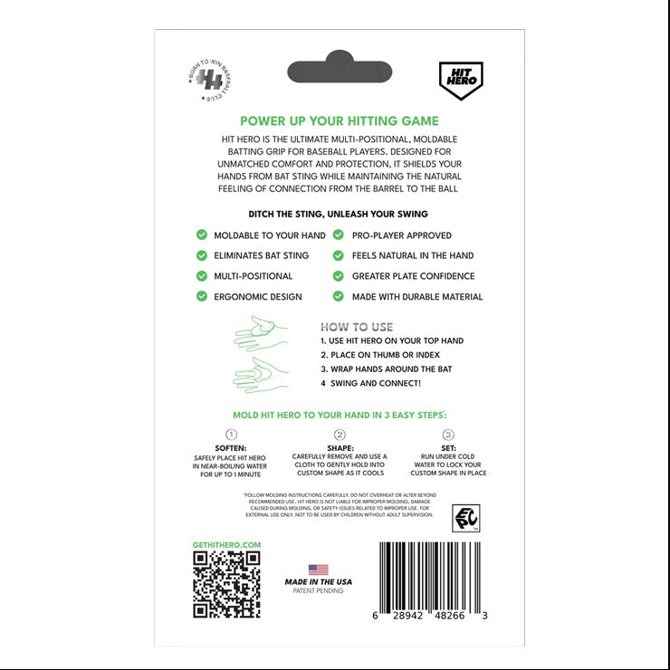 【予約販売】バッティング時に親指を守る! Hit Hero ヒットヒーロー V2 サムガード 成型可能 人差し指にも 親指ガード HHERO 軟式野球 硬式野球 フィンガーグリップ 衝撃吸収 練習用 試合用 大人 一般