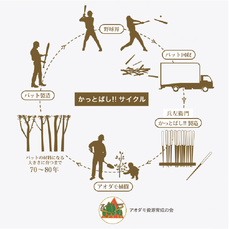 プロ野球や社会人野球、大学野球で使用された後、役目を終えた破損バットや、バット作成時にできる端材を再利用して作られています。
